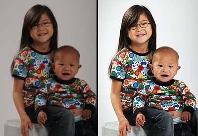 Varje bild ska ses över och genomgå en lätt retuschering. Här ovan har vi ett exempel som jag just fixade åt en kund. (Synd att bloggen drar ner på kvalitén på bilderna...)